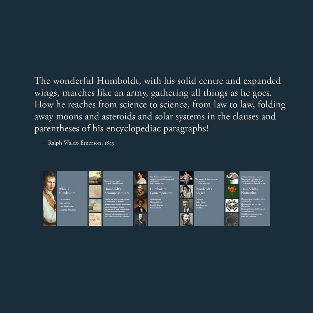 Patrick Bell Design collaborated SAAM staff to design this large-scale introductory wall for this fascinating exhibition of Humboldt and his visit to the early United States.