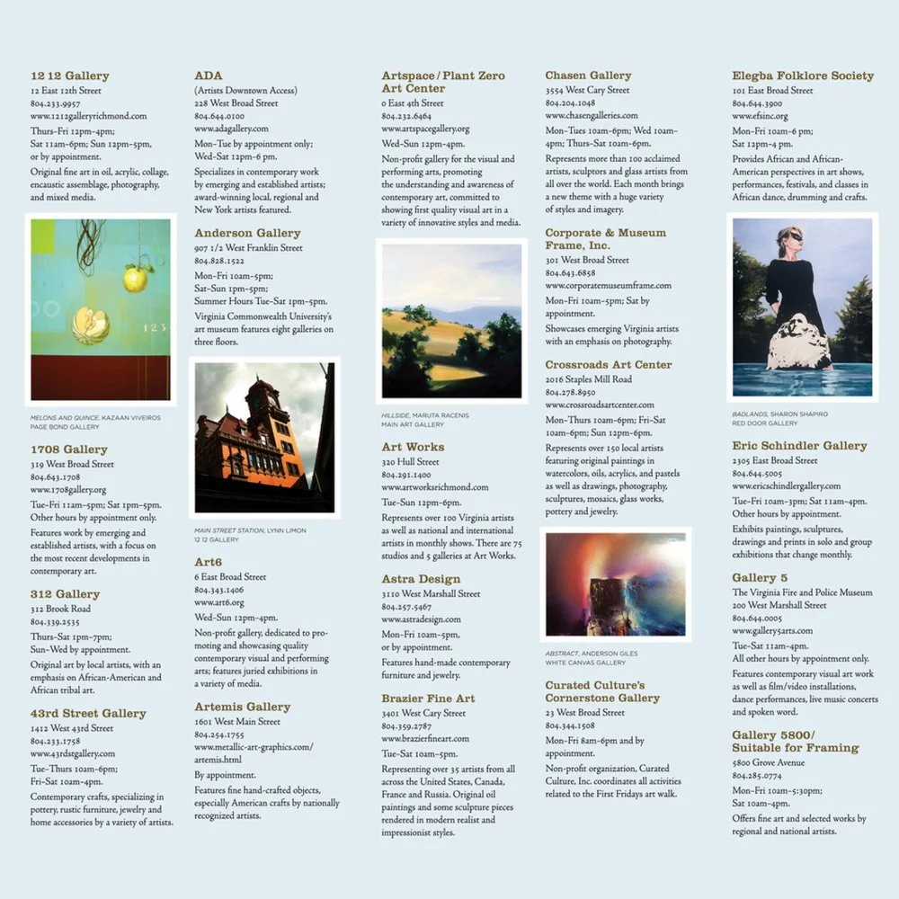 This brochure features a newly designed logo and initial format for a planned series of guides to the art galleries of Richmond, edited by Shannon O’Neill.