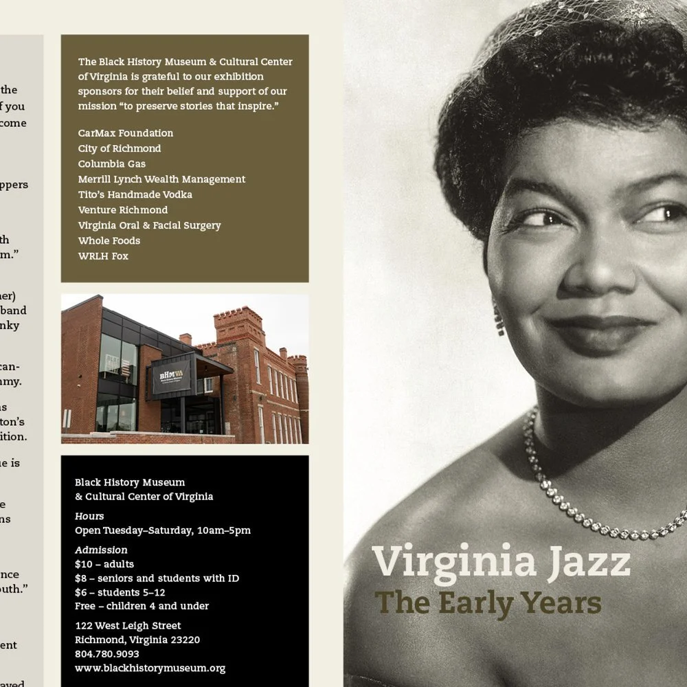 In recent years, Patrick Bell Design has provided exhibition graphic design, exhibition brochures, marketing materials, gallery panels and exterior signage for the Black History Museum in Richmond. Exhibitions have included Yesterday’s Stories, the Art of Freedom, Paradox of Liberty, Bill “Bojangles” Robinson, Violins of Hope, Unsay Their Names, Stop the Pain, and the Art of Freedom II.